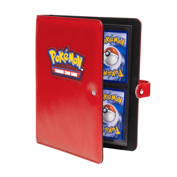 The Premium Snap Binder for Pokémon is the ideal accessory for card collectors of all ages! Each binder features a padded faux leather cover with a rubberized Pokémon logo emblem and can be securely closed with the enamel Poké Ball snap clasp on the front. Inside this durable binder are twenty pages, each with four side-loading pockets for standard trading cards. In total, up to 160 cards in Deck Protector sleeves can be stored. The pages are designed with a low-friction black backing that separates the front and back pockets, giving the cards a framed appearance. Each Premium Snap Binder is made from acid-free, PVC-free materials to ensure your cards are well protected and preserved.